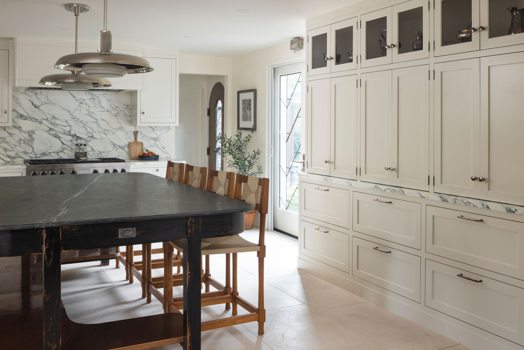 A historic home in Denver’s South Park Hill neighborhood underwent a renovation in which the homeowner took every opportunity to preserve the artistry of the original architecture. Custom cabinetry from Aspen Leaf, imports from Matthew Cox (custom island) and Rachel Dein (plaster panels of botanical art), and exquisite craftsmanship from Boa Construction help make this renovation appear like it was part of the original construction of the home.
