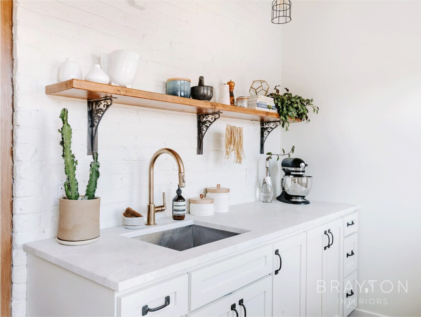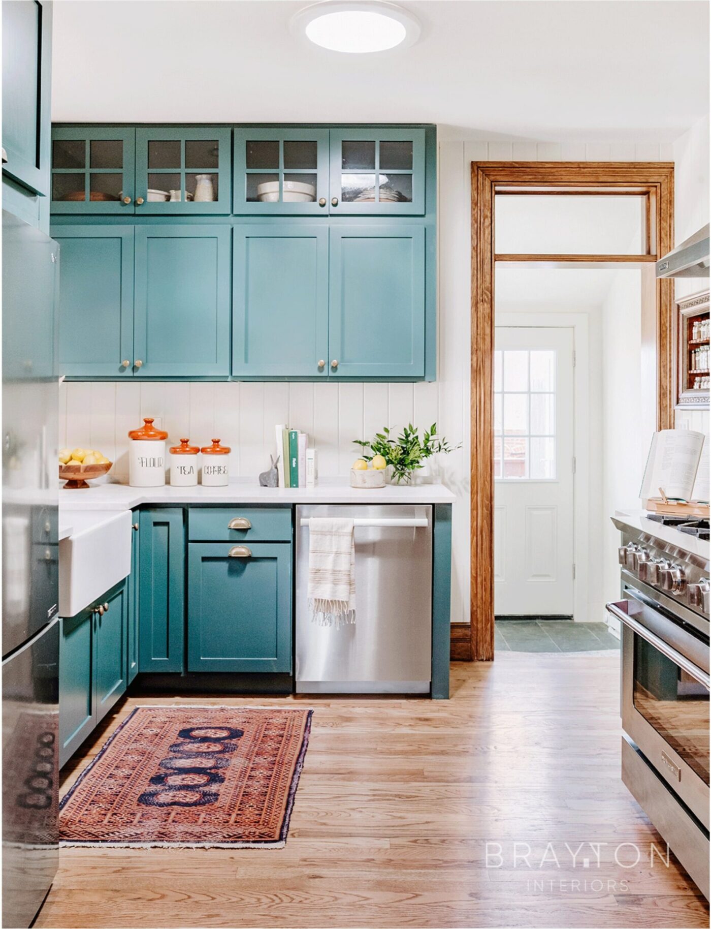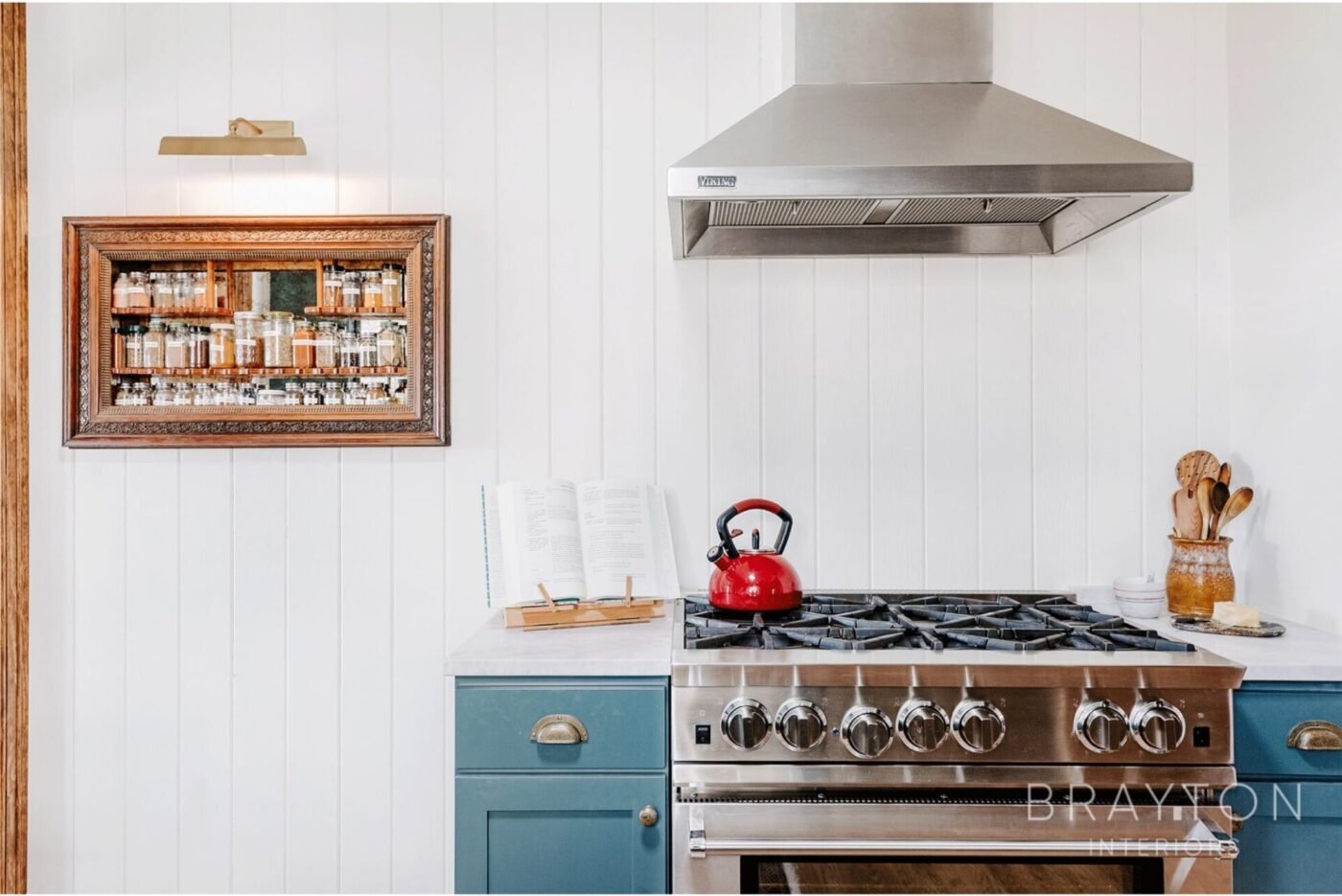 Brayton Interiors brought the historic charm back into this historic home — built in 1903 — and tweaked the layout to accommodate the clients’ entertaining and chef-inspired lifestyle. A professional range was added, an heirloom spice rack was installed into the wall, and the former laundry room next to the kitchen was repurposed into a utility/kitchen prep room.