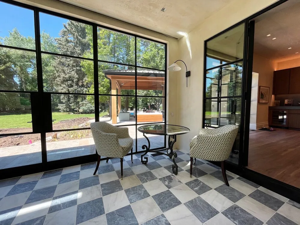 Taking into account the primary design goals of the home’s conservatory–bridging the gap between the indoors and outdoors and a space that felt collected–we had to look outside of the materials available here in Denver and even within the US. When it came to the flooring, we knew early on that finding a reclaimed Spanish marble was the best route to take. Sourcing something like this during a pandemic though…not so easy.